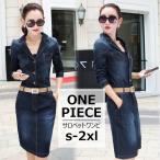 ワンピース レディース デニム 春 夏 膝丈 着痩せ デニムワンピース 通勤